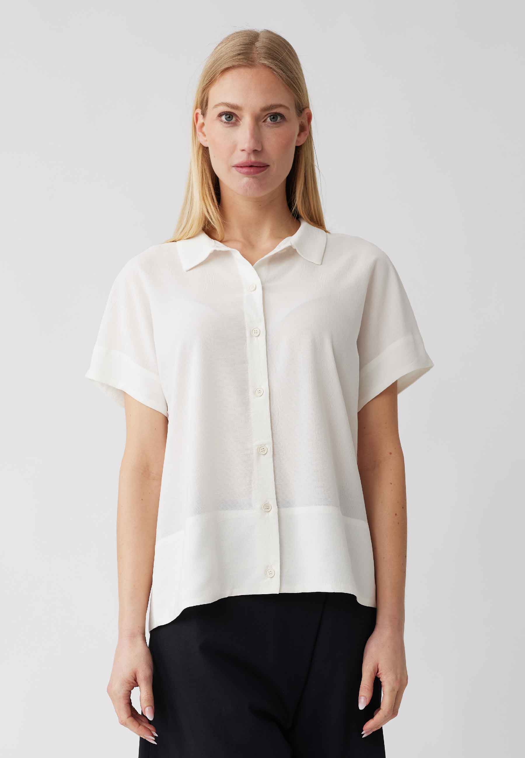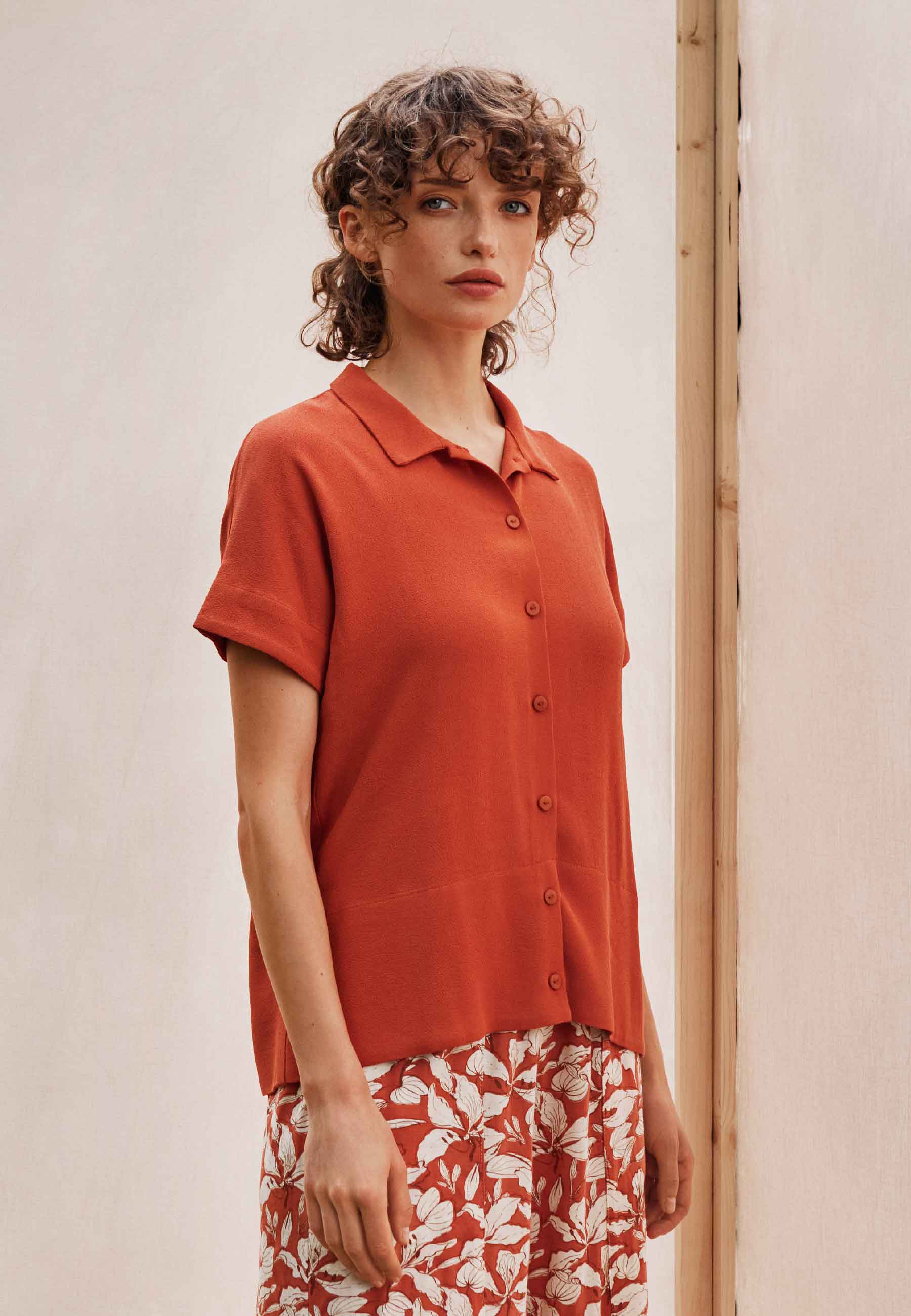Der feine Kragen, die überschnittenen Schultern, eine lässige Weite, die durch geschickt platzierte Abnäher im Rückenteil noch verstärkt wird, geben der durchgeknöpften Bluse Elenora einen sommerlich-edlen Touch. Kombiniert mit dem langen Rock Estella kreieren Sie einen eleganten Look, perfekt für sommerliche Feste.