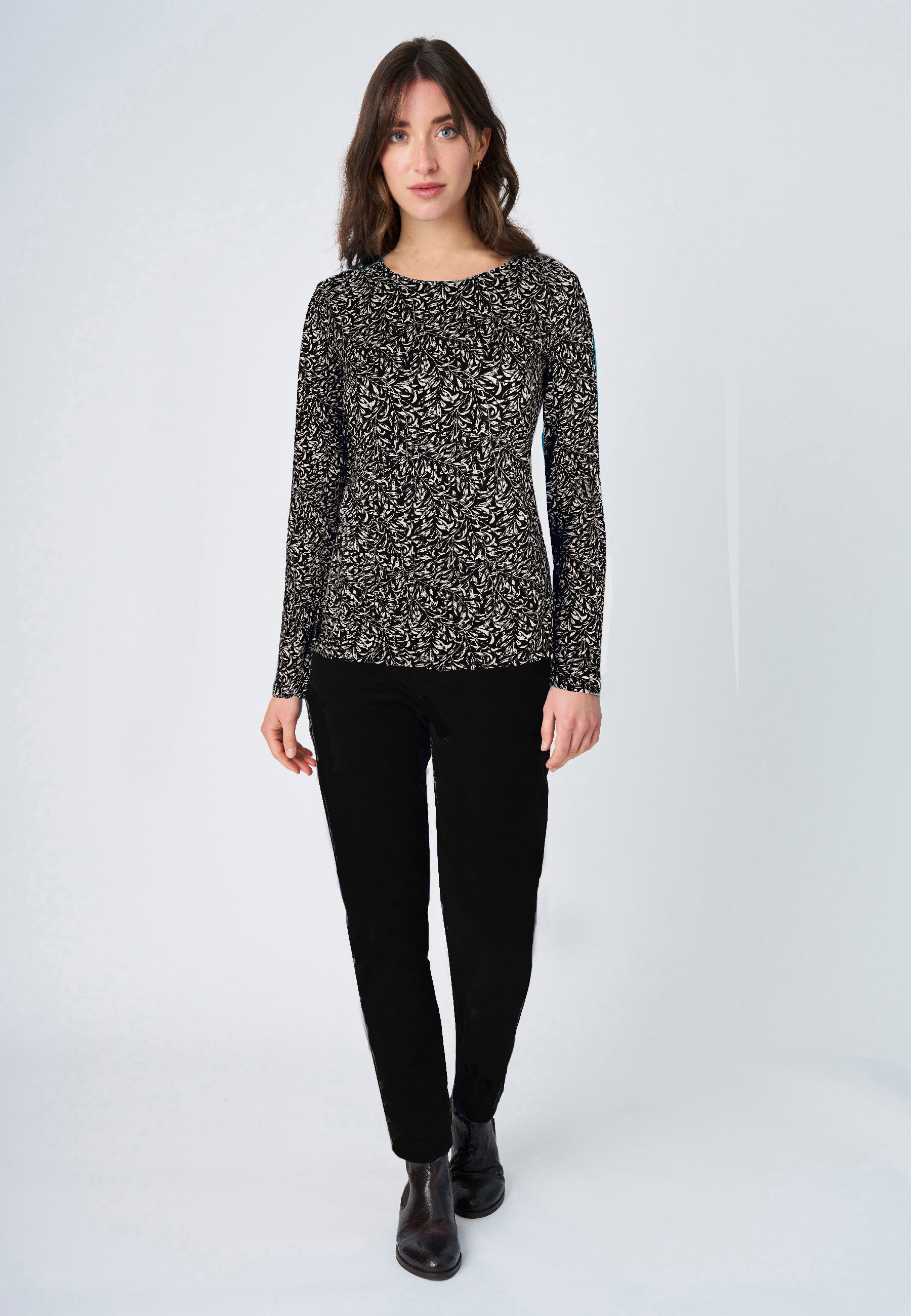 Unser schlichtes Basic-Shirt Nina hat einen runden Halsausschnitt und kommt mit schmaler Passform als treuer Begleiter für den Alltag. Die perfekte Ergänzung unter Jacken oder solo zu Hosen und Röcken bietet dieses Langarmshirt vielseitige Einsatzmöglichkeiten fürs ganze Jahr.