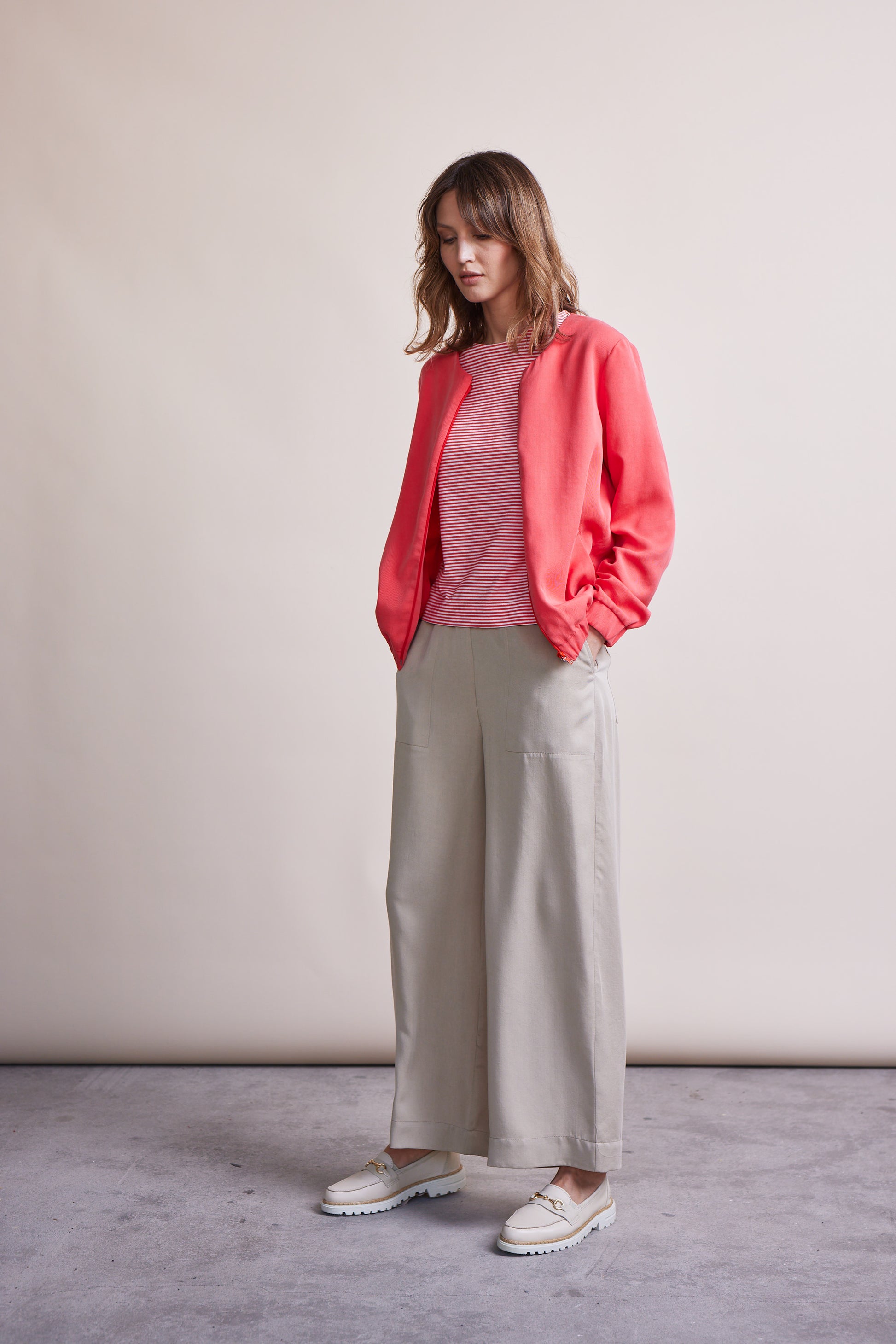 Die Hose überzeugt durch einen lockeren, gerade geschnittenen Schnitt mit dezentem Bund und weiten Beinen, die eine fließende Silhouette erzeugen und moderne Lässigkeit ausstrahlen. Jarina lässt sich vielseitig kombinieren – mit T‑Shirt oder Top für entspannte Freizeitlooks oder mit Bluse für stilvolle Sommeroutfits.