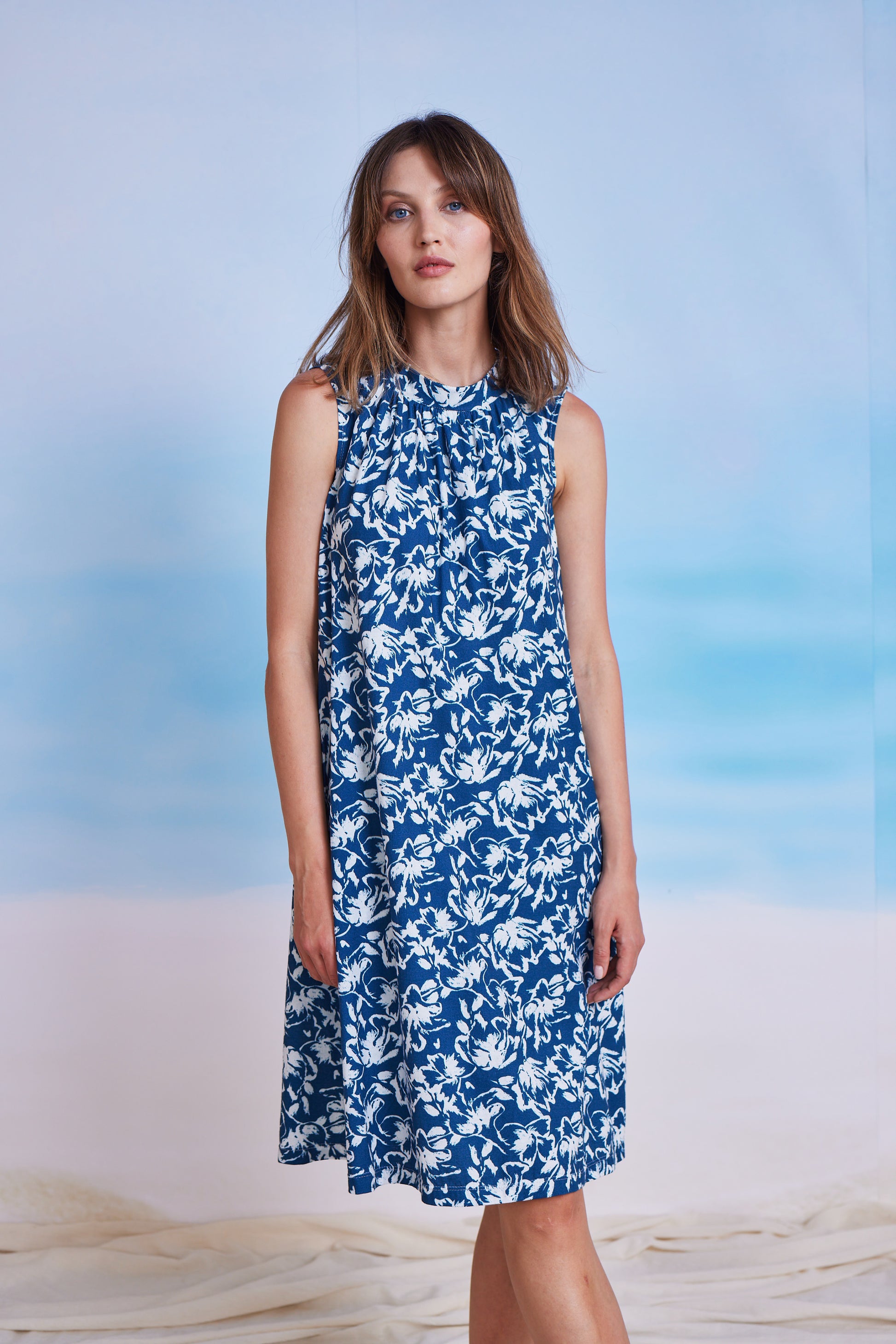 Der ärmellose Schnitt und die klare, feminine Silhouette machen das Kleid sowohl sommerlich leicht als auch bürotauglich. Elegant genug für den Arbeitsalltag, zugleich entspannt für Freizeit oder Urlaub. Ob mit Sandalen, Ballerinas oder leichten Blazern kombiniert – Fabiana lässt sich vielseitig stylen.