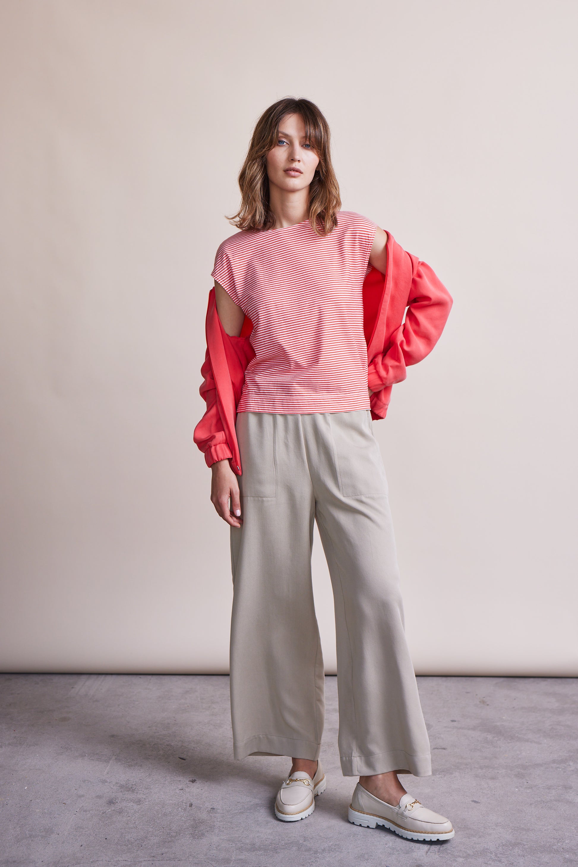 Der klare, ruhige Schnitt betont die Linie, ohne aufzutragen, und macht Kim zu einem zeitlosen Basis-Shirt, das sowohl solo als auch als Layering-Piece funktioniert. Die GOTS-Zertifizierung garantiert, dass sowohl die Baumwolle als auch die Verarbeitung hohen ökologischen und sozialen Standards entsprechen – ideal für alle, die nachhaltige Mode mit Stil suchen.