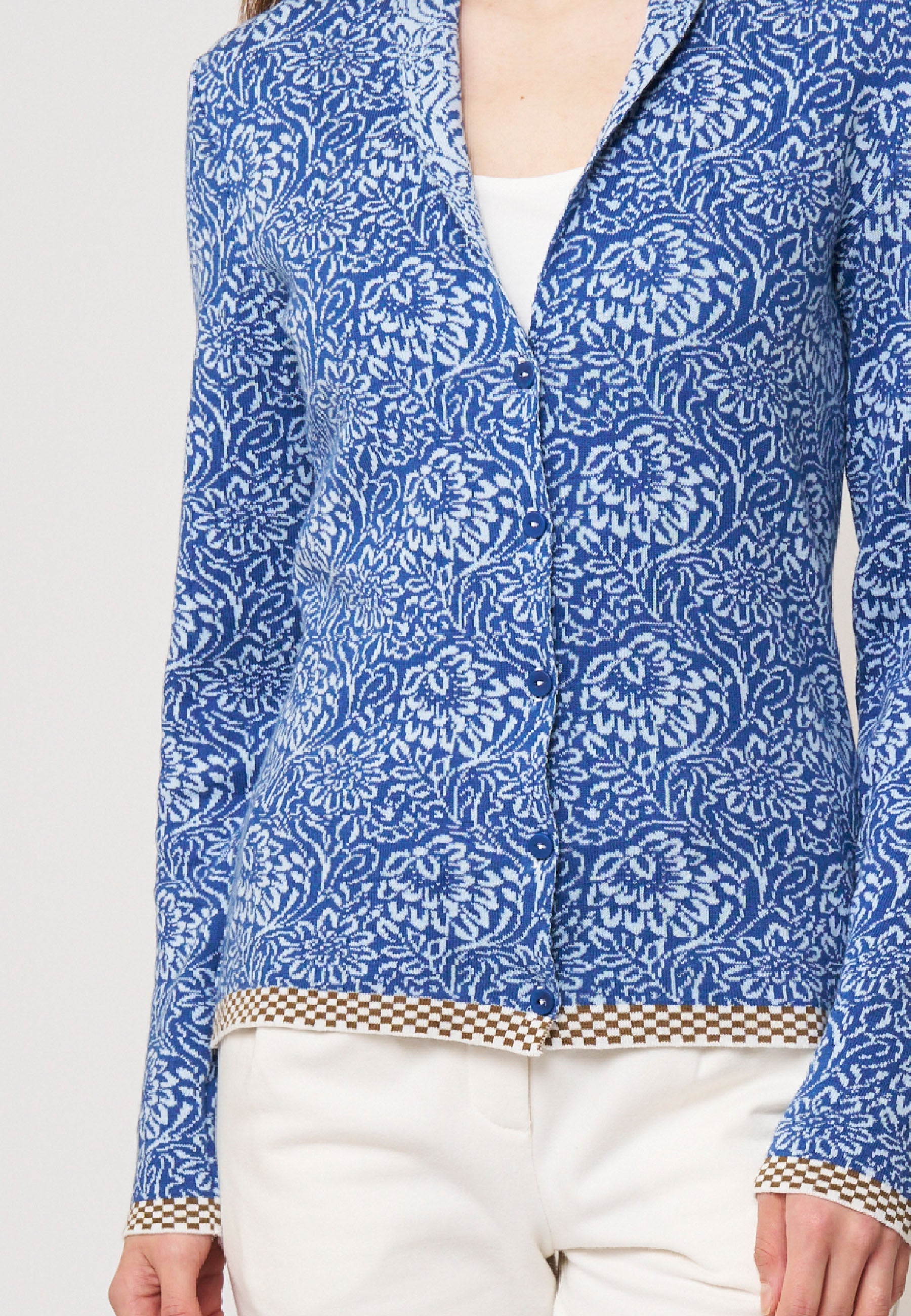Liebevoll gearbeitete Saumabschlüsse schmücken alle Kanten der Jacke und runden die hochwertige Verarbeitung ab. So entsteht eine zeitlose Strickjacke, die Eleganz und Komfort verbindet.
